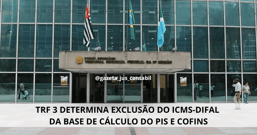 TRF 3 determina exclusão do ICMS-DIFAL da base de cálculo do PIS e COFINS. A Sexta Turma do Tribunal Regional federal da 3ª Região (TRF 3) decidiu que o ICMS-DIFAL deve ser excluído da base de cálculo do PIS e COFINS.